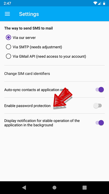 If you need to change the password, disable the option and enable it again. Be careful, restore access to the application, if you forget the password will be impossible.