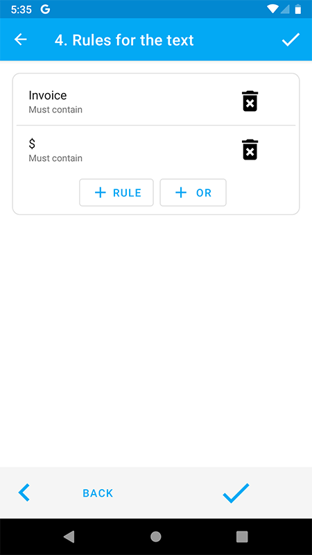 Reguła to słowo lub fraza, które muszą znajdować się w tekście SMS, aby przelew mógł działać. Może być ich kilka, gdy wskazane są 2 lub więcej reguł, działa to w oparciu o zasadę „ORAZ” (to znaczy warunek wszystkich reguł musi zostać spełniony, aby SMS mógł zostać wysłany).